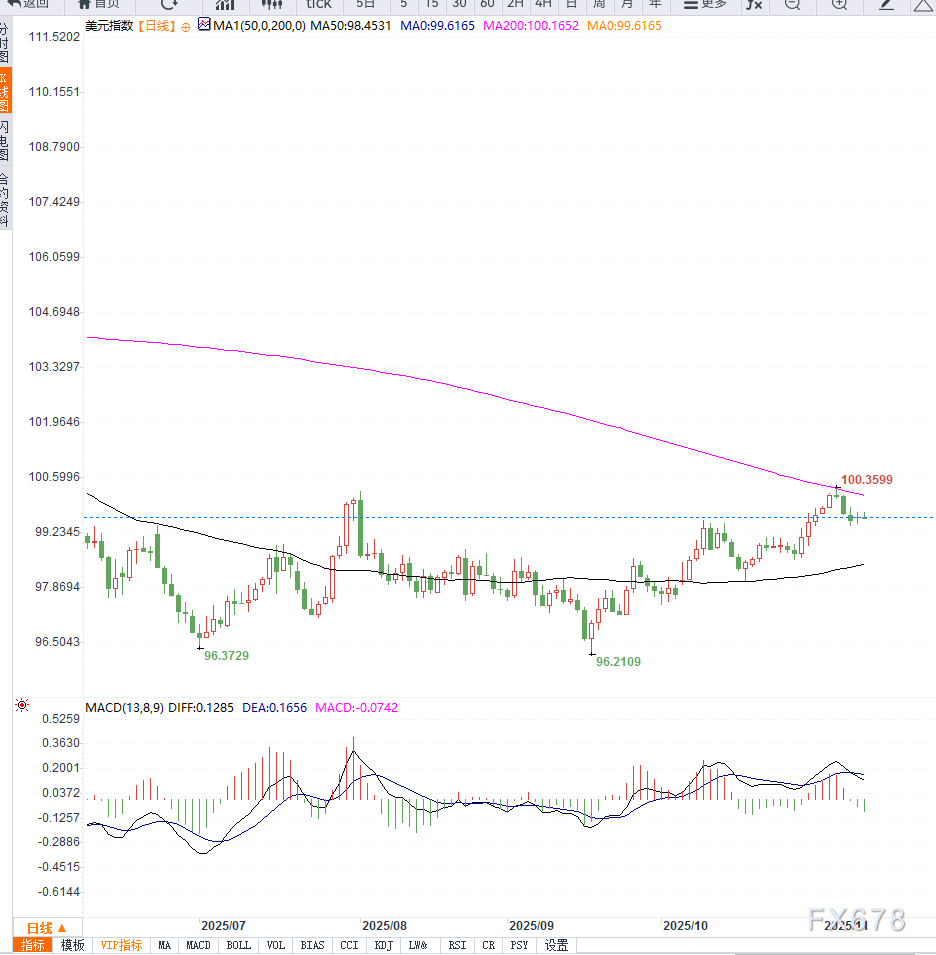 周二亚洲交易时段,美元指数(DXY)稳守在 99中上区间,反映美元在一系列利多消息下仍保持支撑。
