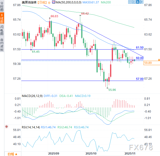 60美元——心理关口:此点位代表关键短期心理价位。油价在该关口附近震荡时,市场可能维持区间波动,但若始终未见多头催化剂,持续疲软可能引发新的下行压力。